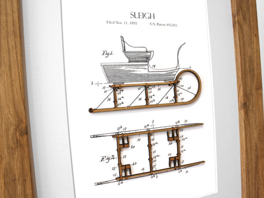Vintage Sleigh Blueprint, Christmas Decor, Patent Art