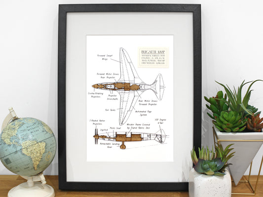Plan de la Bugatti 100P, décoration murale aéronautique