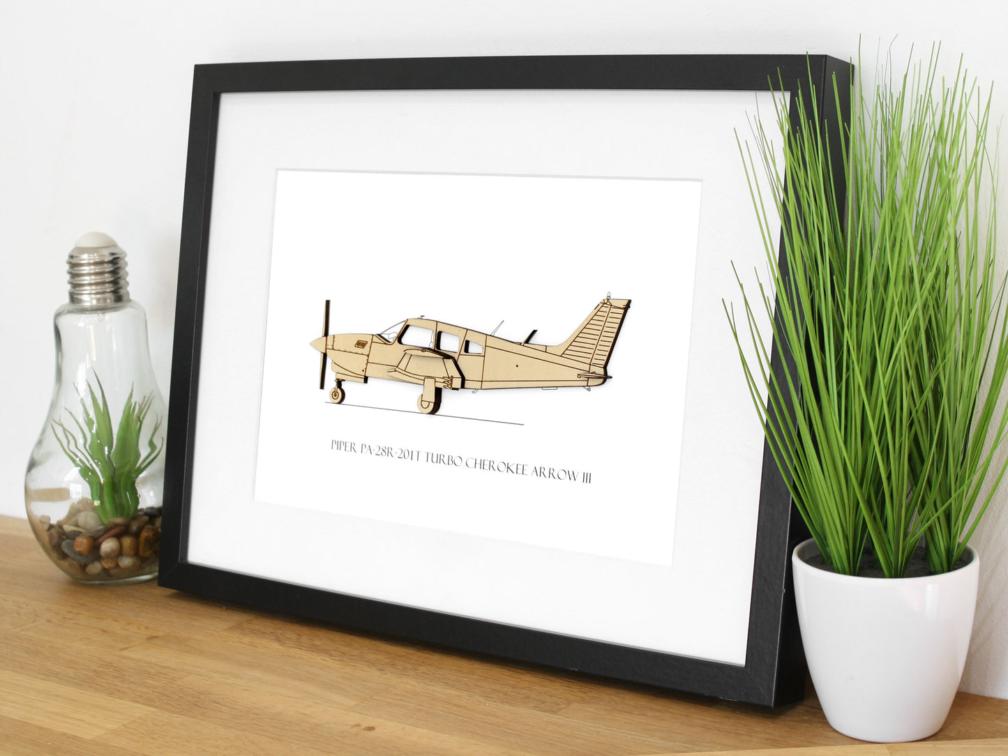 Cette élégante œuvre d'art est le cadeau idéal ou la décoration idéale pour les propriétaires ou les pilotes de Piper Arrow III. L'option de personnalisation la rend encore plus spéciale !